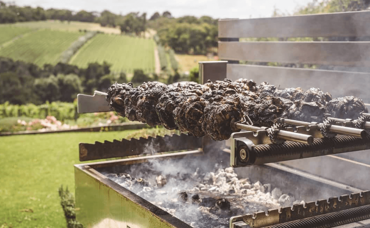 Situated right in our own backyard, Tuck’s Ridge is situated in the booming Red Hill wine region. On arrival you will see their Semak Charcoal Rotisserie smoking away in front of an endless vista of the rolling grapevines.
